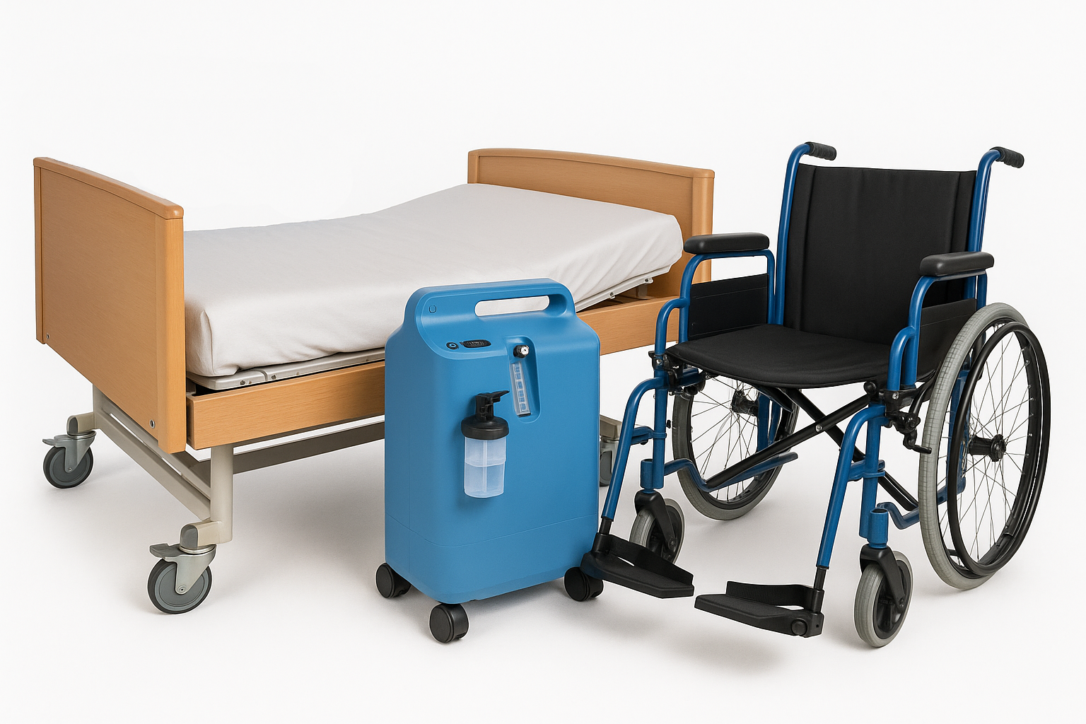Sprzęt jest zawsze w 100% sprawny technicznie i gotowy do bezpiecznego użytkowania. Dbamy o to, aby wyeksploatowane egzemplarze były regularnie wymieniane na nowe. Ze względu na ciągłą i intensywną pracę w wypożyczalni, sprzęt może nosić naturalne ślady użytkowania, takie jak drobne zarysowania (np. na barierkach łóżka rehabilitacyjnego). Nie wpływa to na jego funkcjonalność i bezpieczeństwo.
